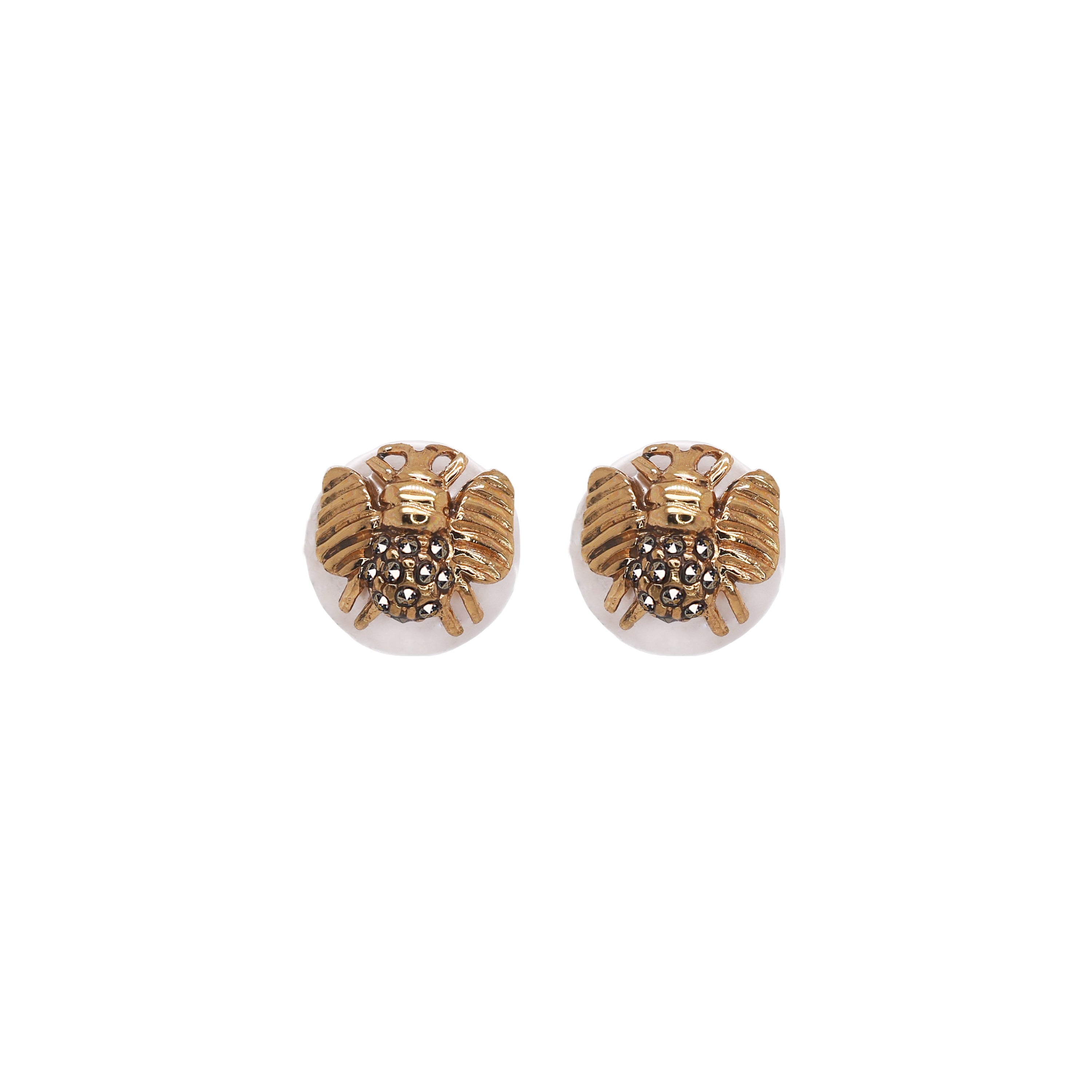 Aretes de Perla con abejita de plata .925 y baño de oro de 14K incrustada.