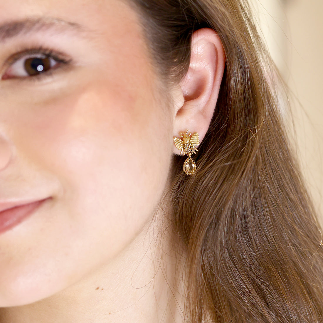 Los Aretes Mini Abeja con Drop son la combinación perfecta entre delicadeza y personalidad. Inspirados en la fuerza y dulzura de la naturaleza, estos aretes pequeños están elaborados en Plata .925 con baño de oro de 14k, lo que garantiza brillo, calidad y larga duración.