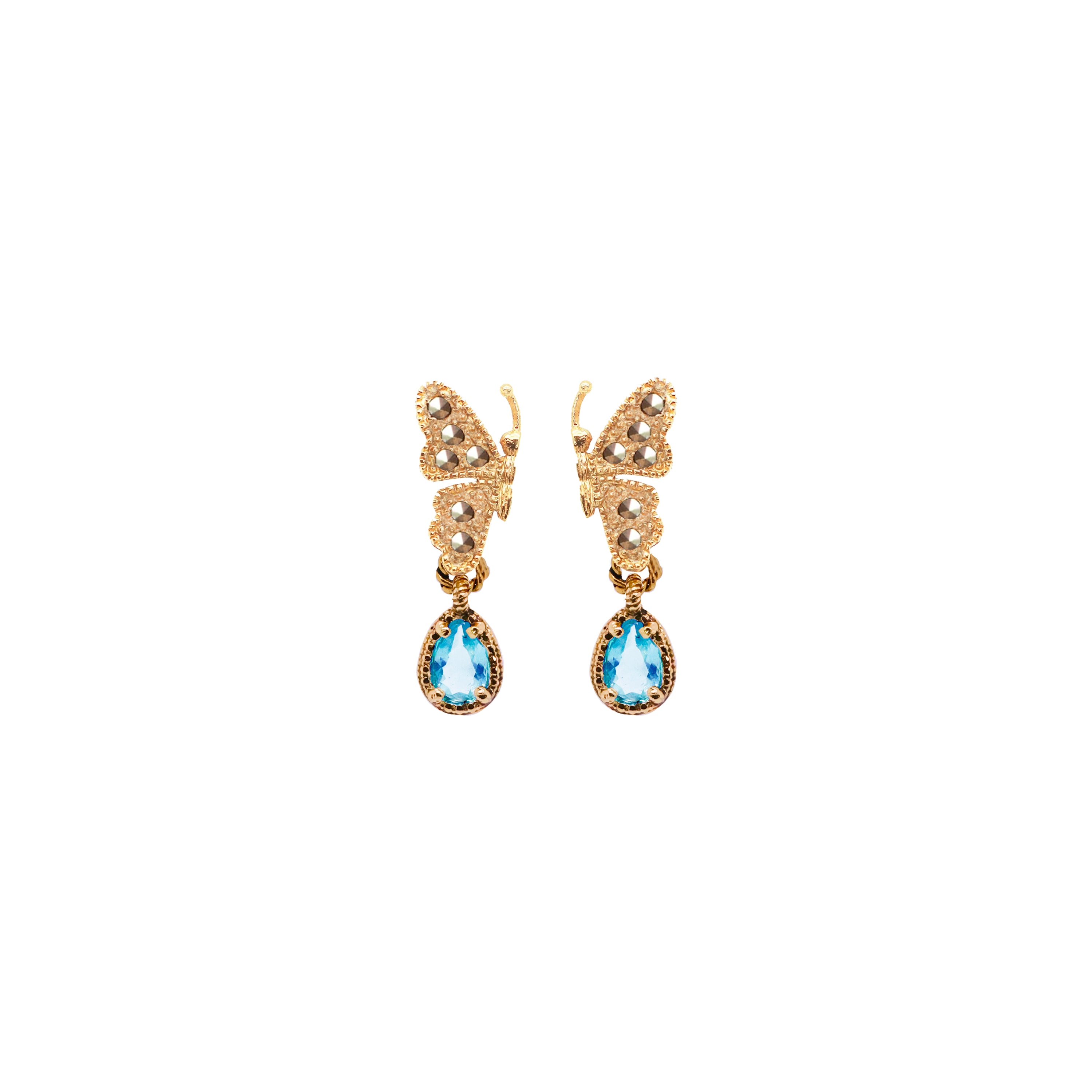 Los Aretes Mini Mariposita con Mini Drop Azul son delicadeza en movimiento. Inspirados en la transformación y la libertad, este diseño mini está elaborado en plata .925 con baño de oro de 14k, garantizando brillo, calidad y larga duración.