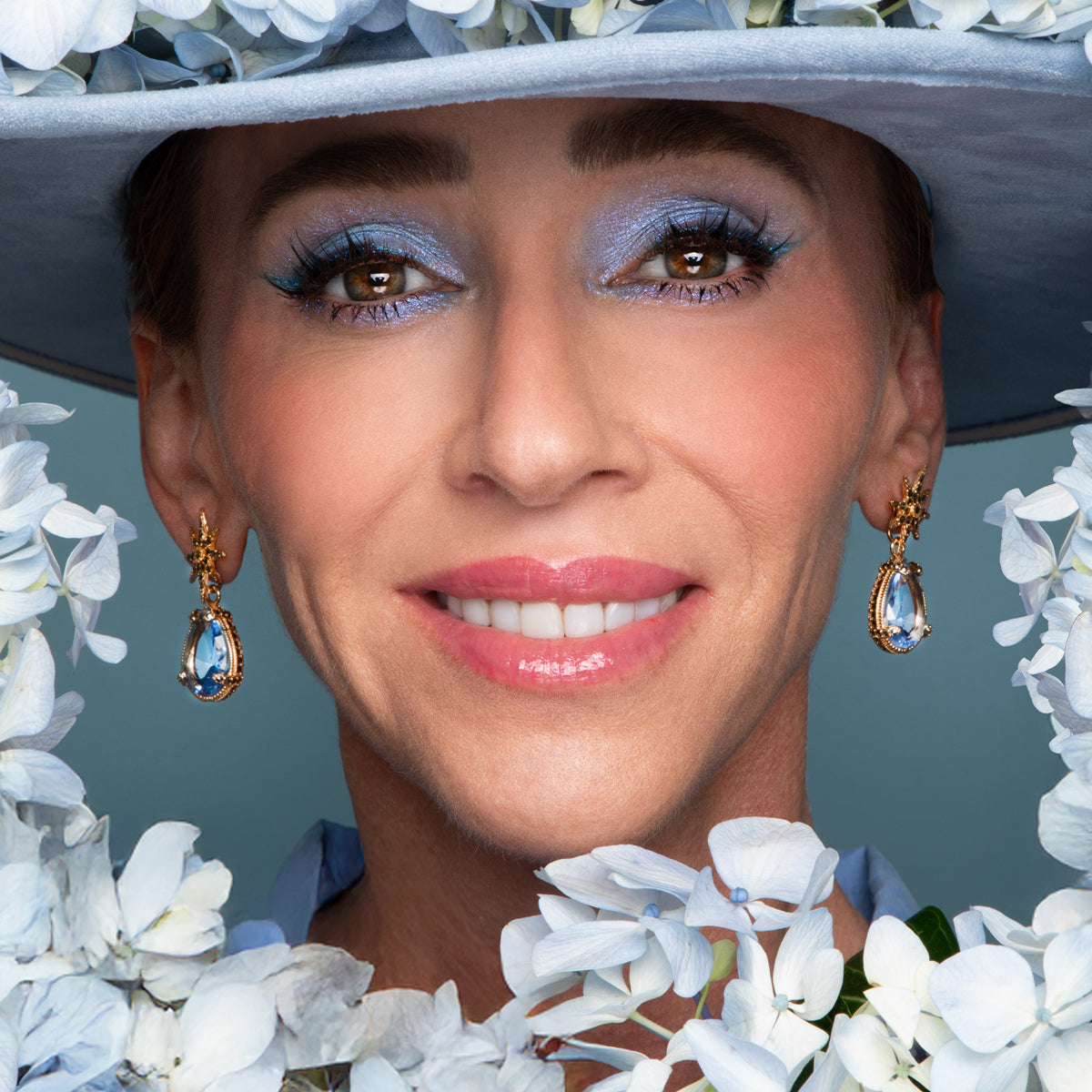 Hexágono de piel con kit de 7 pares de cristales desmontables, un Bisel/Portadrop de plata .925 con broche lateral y aretes de Polaris de plata .925 con baño de oro de 14k desmontables.