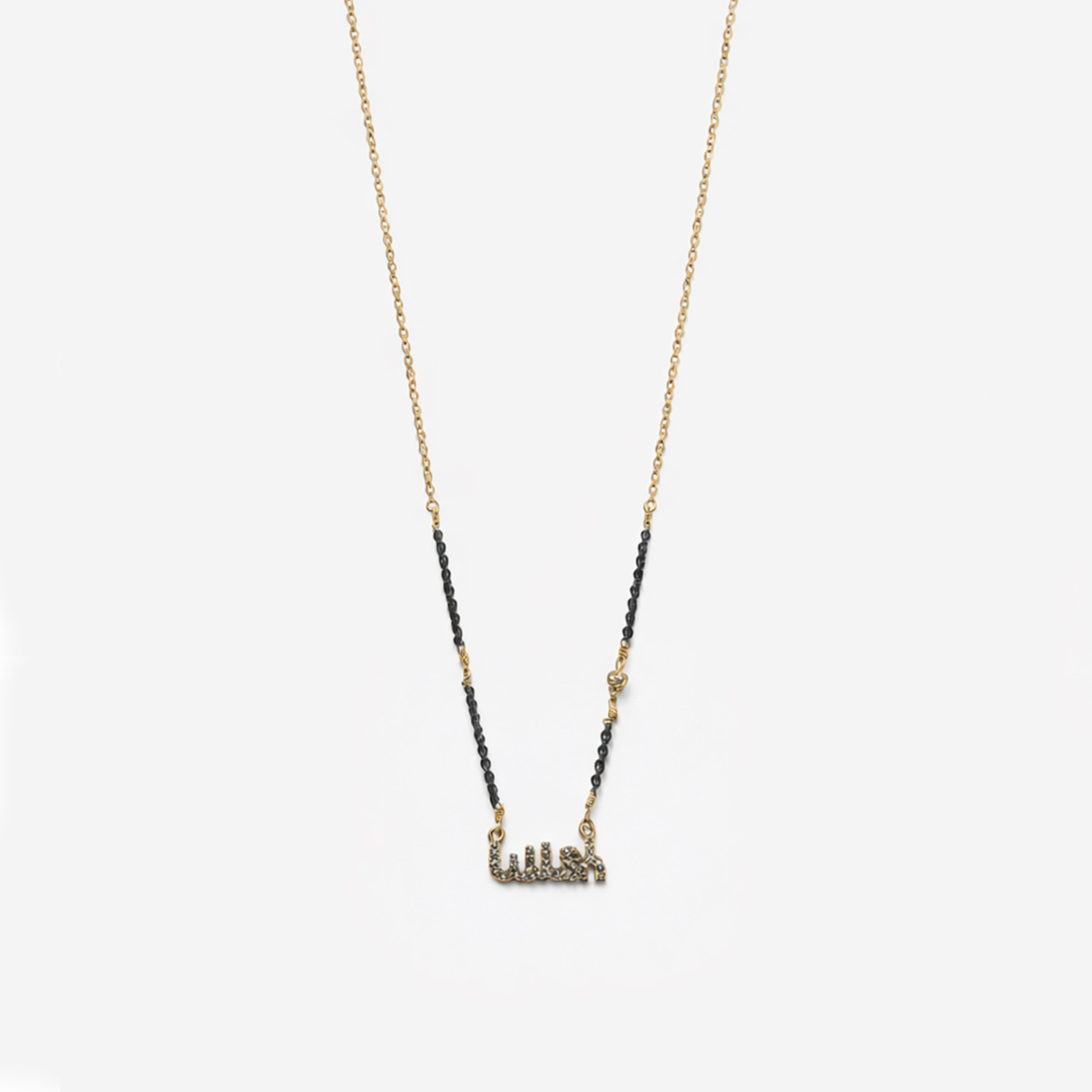Collar de frases de plata .925 con baño de oro de 14 kt con incrustaciones de piritas.