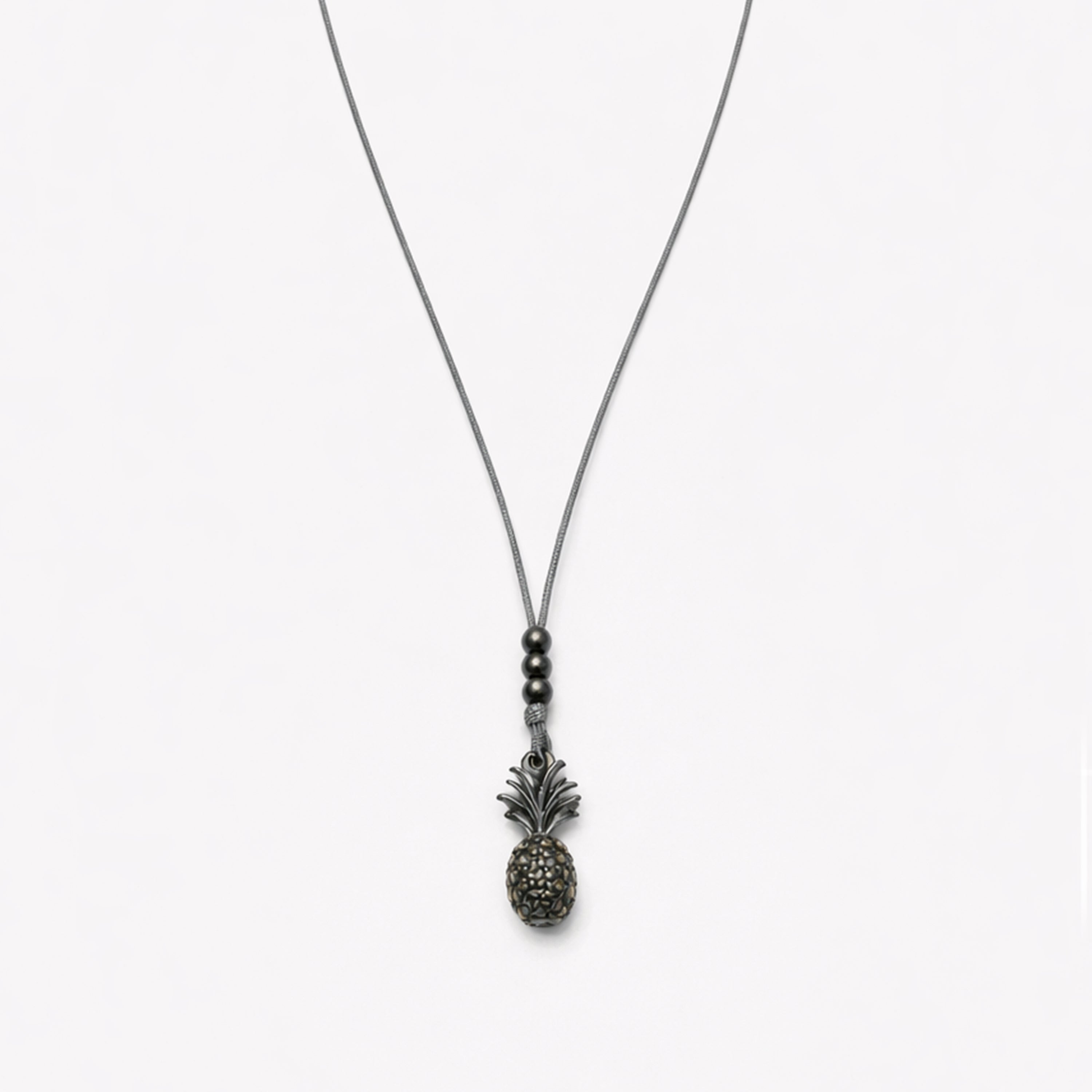 Collar de hilo con dije de plata .925 con acabado de plata .925 con incrustaciones de piritas.