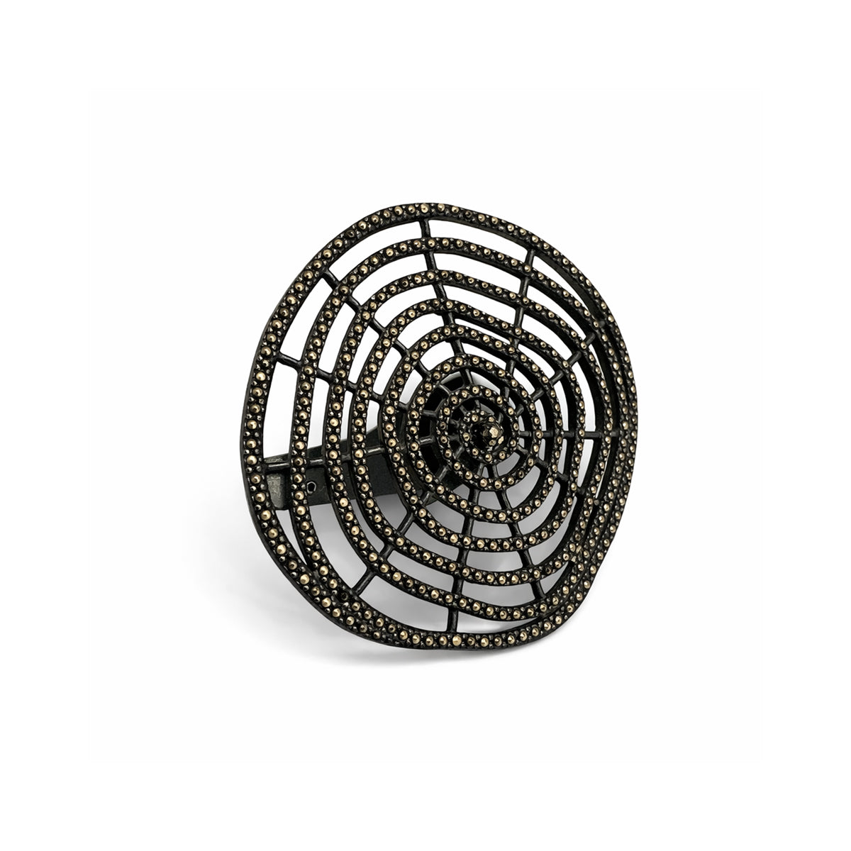 Anillo en forma de telaraña de plata .925 con pátina grisácea e incrustaciones de piritas.